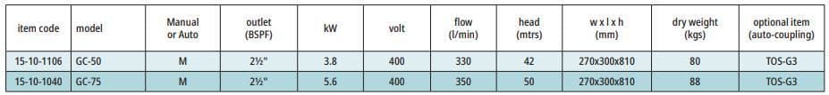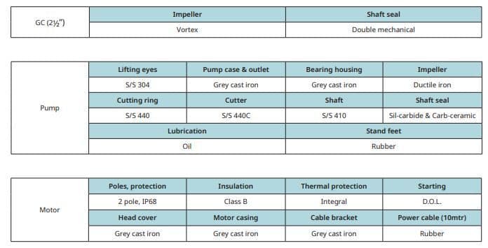 These GC-50 and GC-75 Pumps can be utilised in sewage stations and for servicing groups of houses where drainage by gravity is not possible.