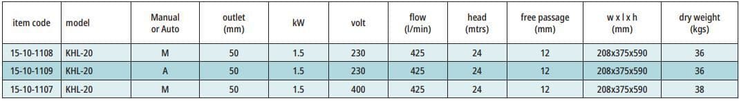 A reliable pump, the APP KHL-20 features a twin oil bathed mechanical seal that provides longevity.