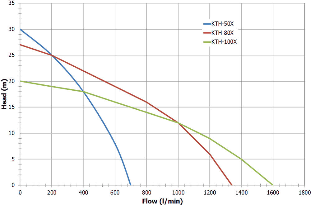 The Koshin KTH-50X, KTH-80X and KTH-100X are Honda petrol driven engine trash pumps for sewage and dirty water. They feature a silicone carbide mechanical seal, hi-chrome impeller and spheroidal graphite-iron volute with a solids handling capability of up to 30mm in diameter.