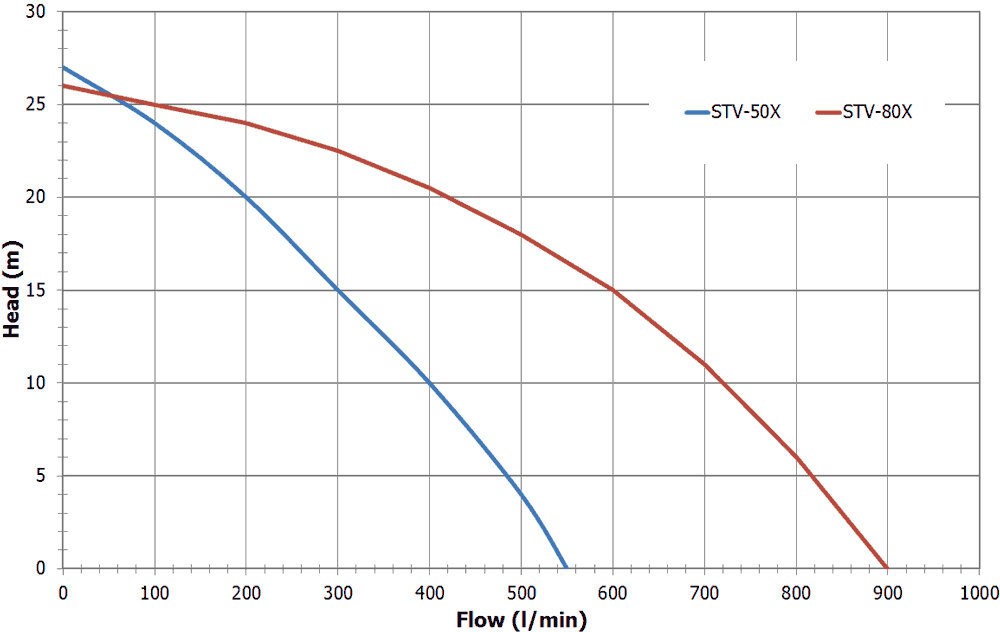 The Koshin STV-50X and STV-80X are semi-trash pumps which feature a silicon carbide mechanical seal, which extends service life, a graphite iron impeller and volute casing, which increases wear resistance and is suitable for solids up to 8mm.