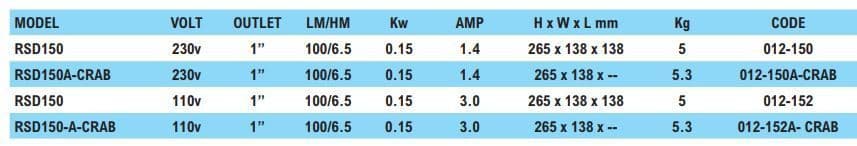 The oil filled motor, provides perfect cooling which enables the pump to run dry for prolonged periods