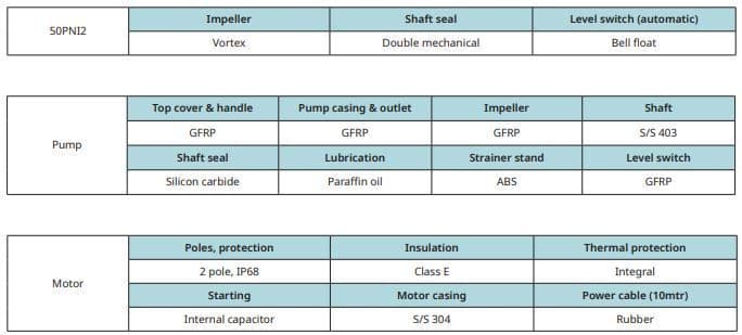 They feature a dual control float-switch which enables manual and automatic operation. This switch is also adjustable to enable individual setting of on and off levels.