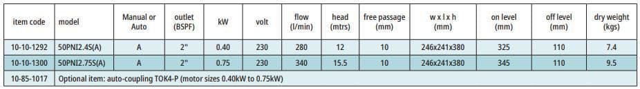Manufactured by the industry leading experts are Tsurumi Pumps, the 50PNI2 series are light and compact, automatic pumps with energy efficient motors and integral anti-airlock valves.