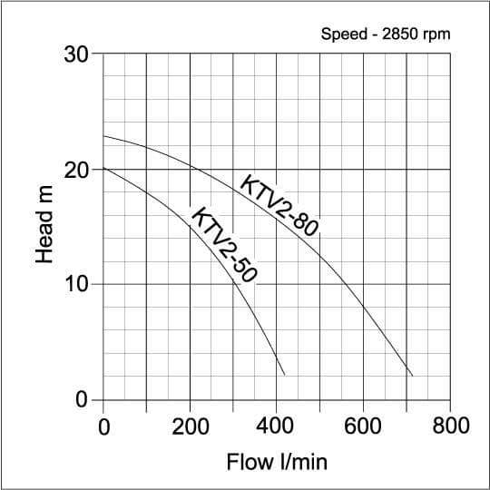 | Model | Outlet (mm) | kW | Flow (l/min) | Head (metres) | Free Passage (mm) | Width (mm) | Length (mm) | Height (mm) | Dry weight (kg) | Packing weight |
