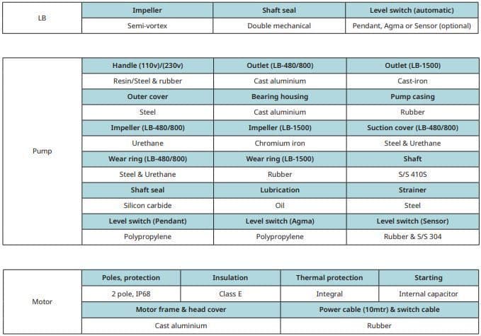 | LB-480 Auto | 230V | 50 | 0.48 | 225 | 11 | 6 | Ø187x275 | 10.8 | 12.7 |