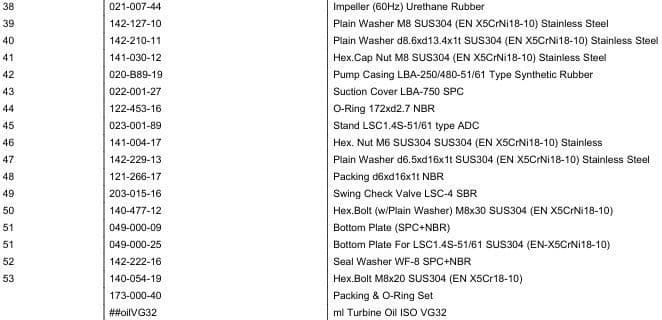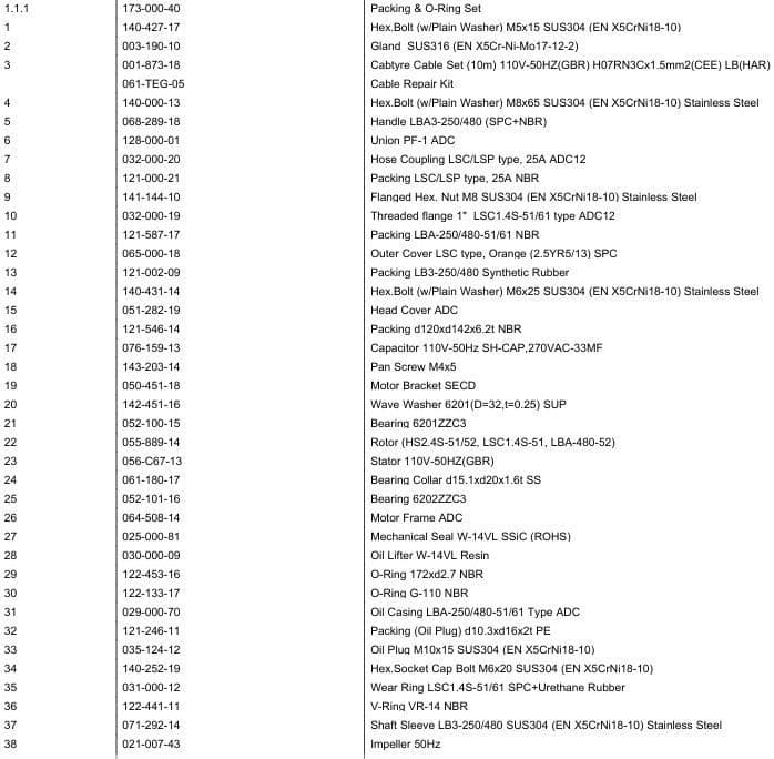Tsurumi LSC1.4S Water Pump Spares & Parts List