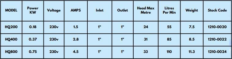 Manufactured by the industry leading experts at Walrus Pumps, the WRAS approved HQ series are designed for water supply and pressure boosting in residential and light commercial applications where low or inadequate water pressure exists.