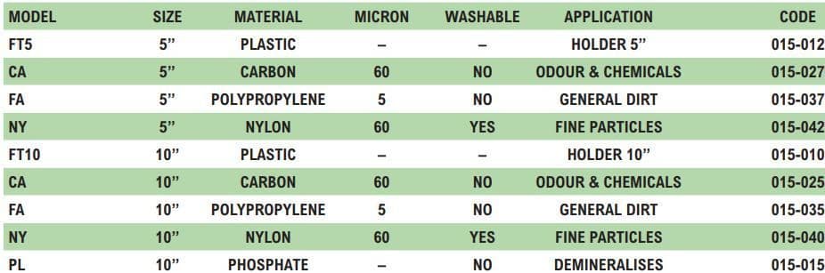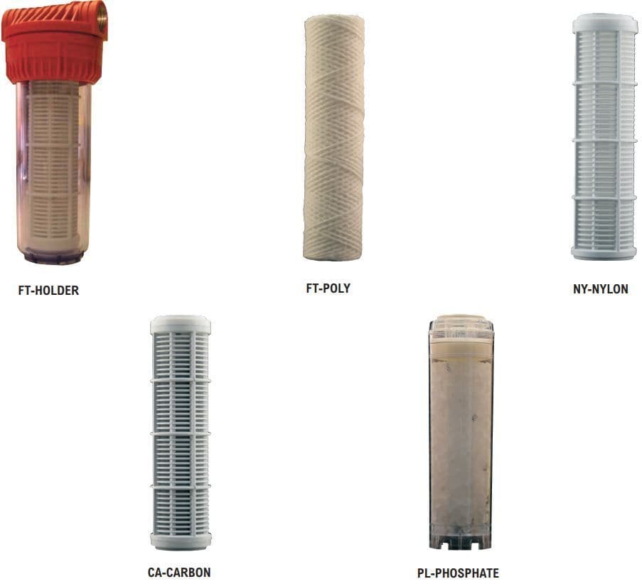 As water passes through the cartridge filters, the suspended particles are removed while cartridges containing polyphosphates or carbon are able to treat the water to eliminate the formation of scale or unpleasant odours.